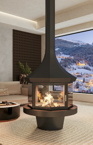 YUVARLAK CAMLI ORTA ŞÖMİNE 90X90